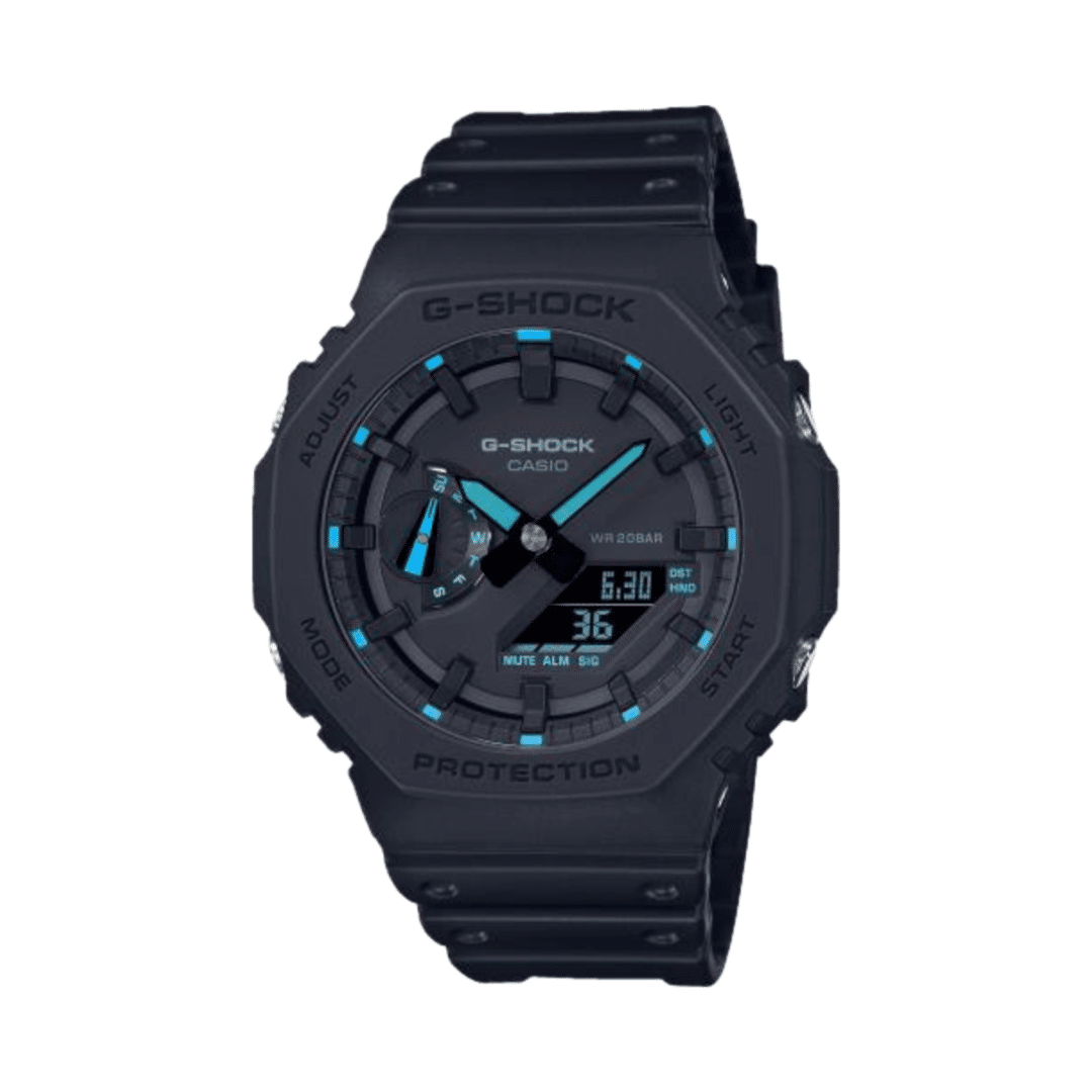 Model GA-2100-1A2ER je često nazivan “CasiOak” zbog svog oblikovanog osmerougaonog bezela koji podsjeća na dizajn Audemars Piguet Royal Oak modela, ali u G-Shock izdrživom ruhu.