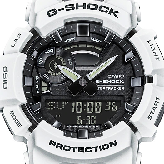 Sat je opremljen Bluetooth povezivanjem, brojačem koraka, kalkulacijom udaljenosti i analizom kalorijske potrošnje. Uz to, GBA-900-7AER koristi G-Shock Move aplikaciju koja omogućava detaljan pregled podataka o treningu. Kombinacija analognog i digitalnog prikaza daje savršen balans između klasičnog izgleda i savremene funkcionalnosti.