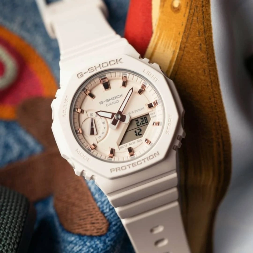 GMA-S2100 serija je predstavila istu karbonsku strukturu poznatu iz GA-2100 modela, ali u kompaktnijoj verziji — to ga čini jednim od rijetkih G-Shock modela koji balansira robusnost i eleganciju za tanje zglobove.