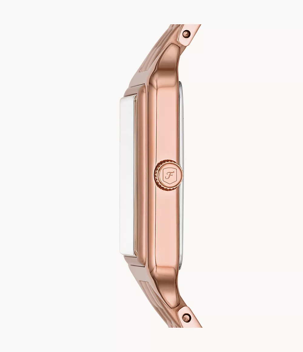 Nježnija strana vintage stila. Kultni pravougaoni oblik u popularnoj Rose Gold boji, osvježen svijetlim ciferblatom za savršenu čitljivost i eleganciju.