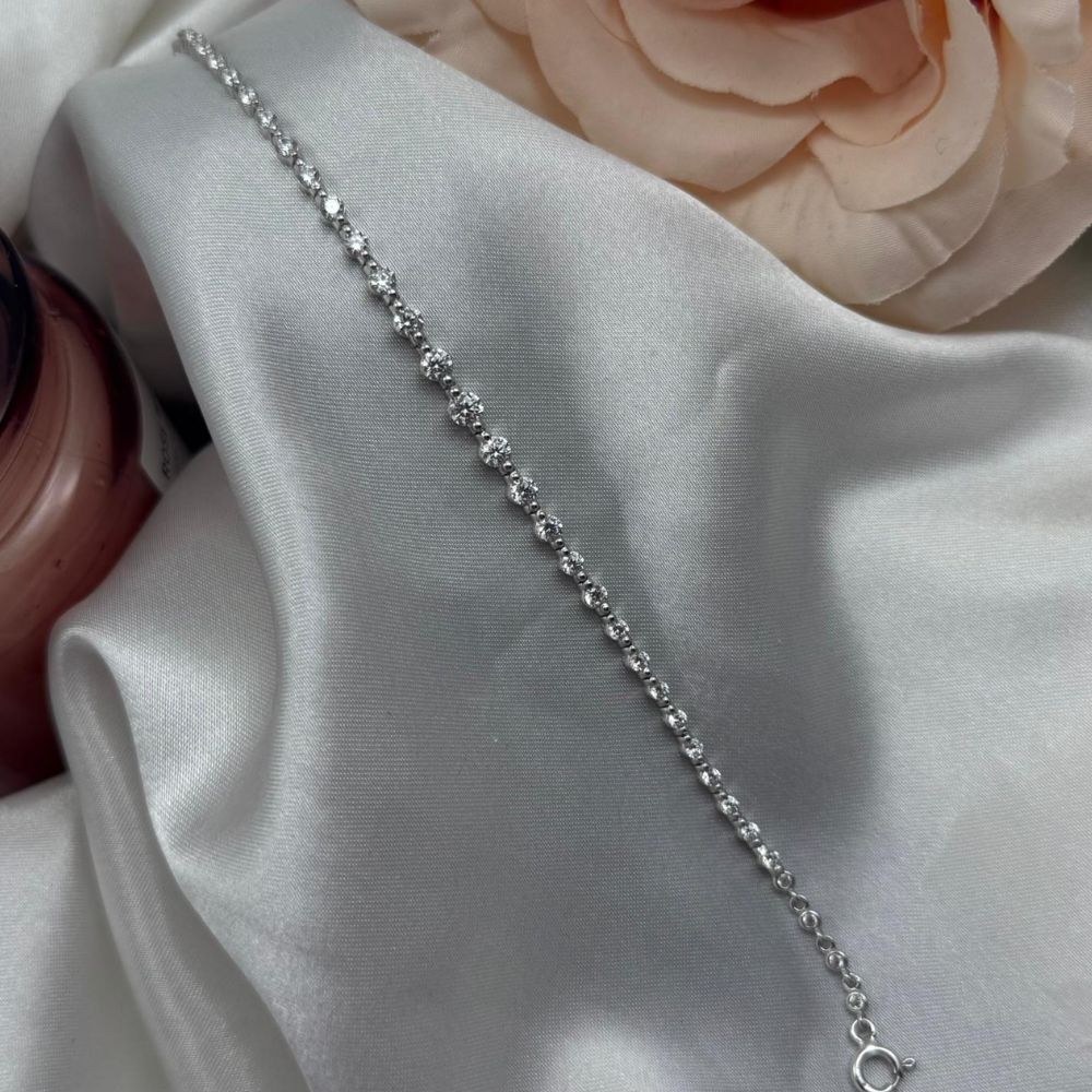 Svaki prozirni cirkon je pažljivo fiksiran u ležište od srebra finoće 925, čime se postiže maksimalna refleksija svjetlosti. Narukvica je opremljena sigurnosnom kopčom koja osigurava udobnost i bezbrižnost tokom cjelodnevnog nošenja.