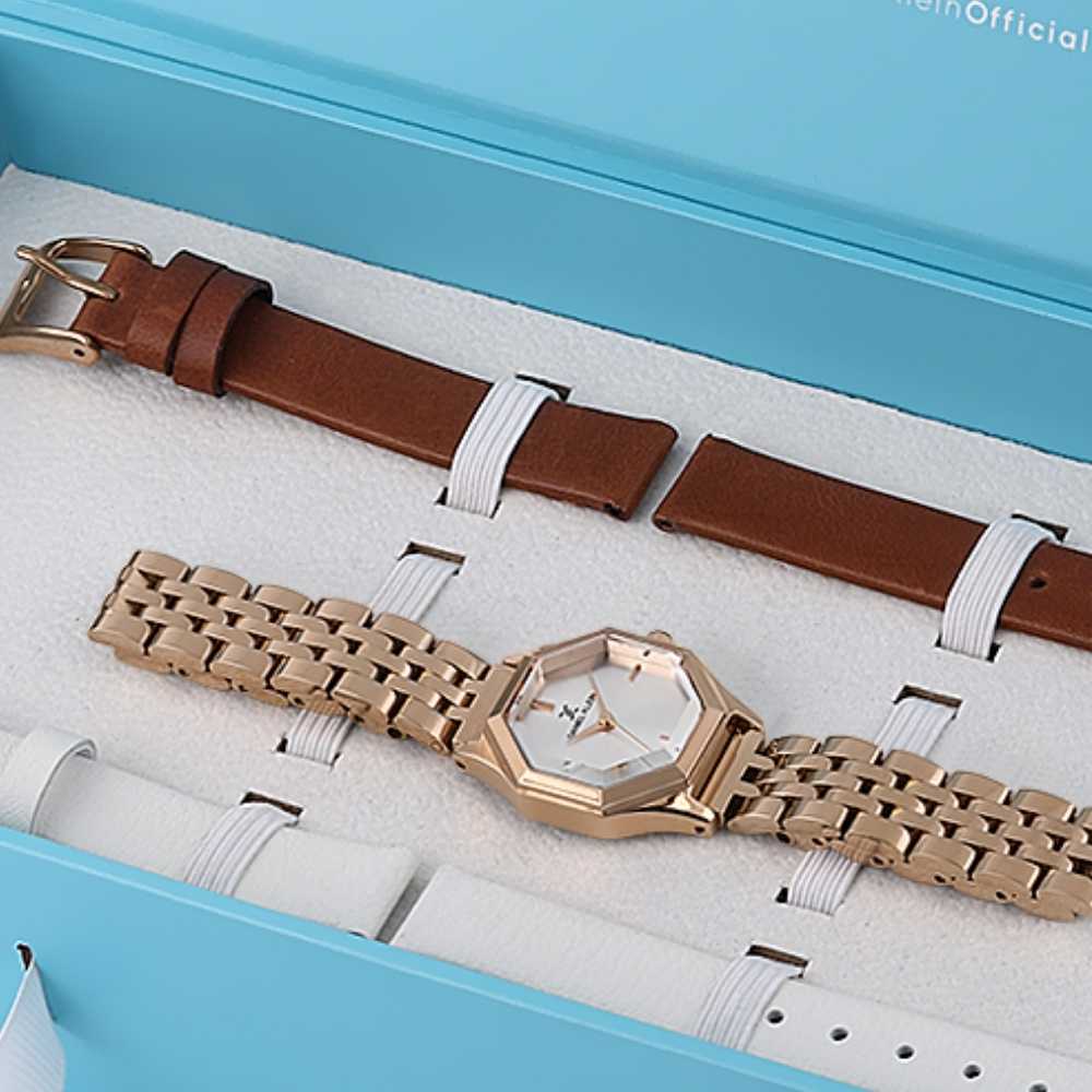 Model DK.1.13719-4 omogućava vam da s jednim satom dobijete tri različita izgleda. Bilo da volite klasični metalni sjaj, nježnu bijelu eleganciju ili toplu smeđu notu, ovaj set nudi potpunu fleksibilnost. Dizajniran je za žene koje cijene detalje i žele da svaki dan nose unikatnu kombinaciju stila i praktičnosti.