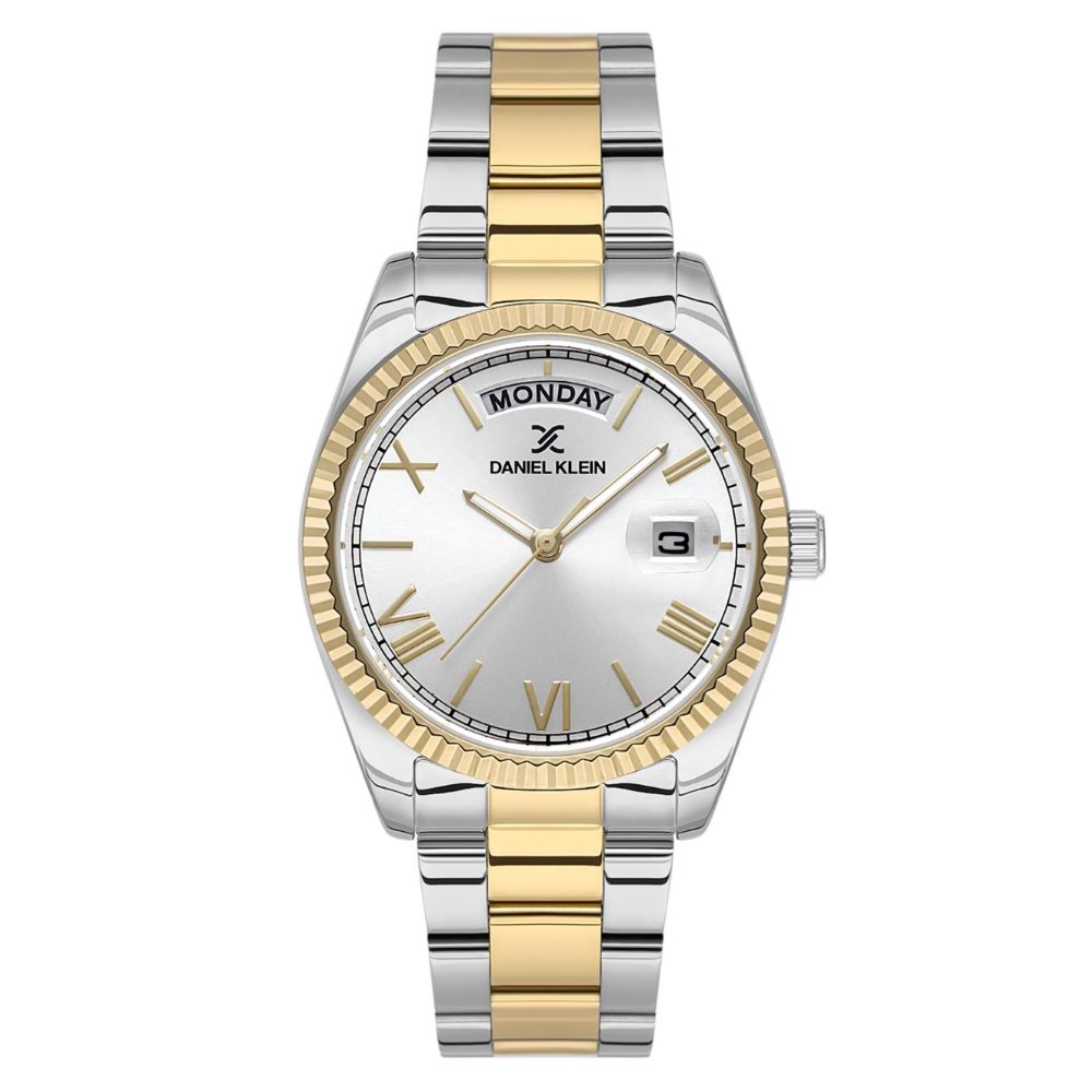 Daniel Klein DK.1.13764-4 ističe se svojim preglednim srebrnim brojčanikom na kojem dominira luksuzni prikaz dana u sedmici na poziciji 12 sati. Uz zlatne rimske brojeve i kazaljke, sat posjeduje i praktičan prozor za datum na poziciji 3 sata, dodatno naglašen povećalom za lakše očitavanje.