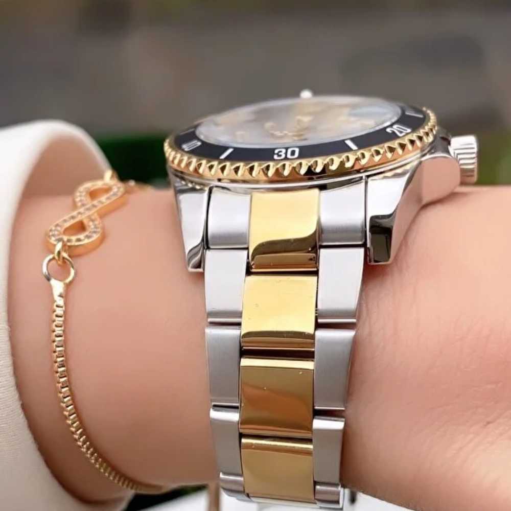 - Materijal narukvice: Nehrđajući čelik (srebrno-zlatna kombinacija)